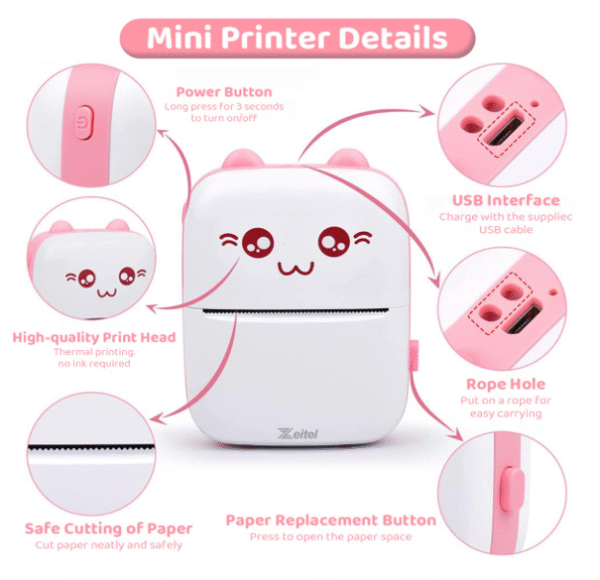 Portable Mini Kids Printer with Cartridge Roll