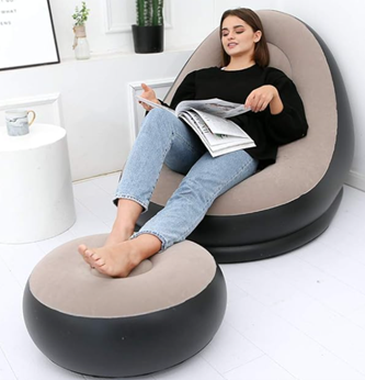 - VERSATILE DESIGN: 2-in-1 inflatable sofa chair with footstool that transforms into a comfortable lounge bed for indoor or outdoor relaxation